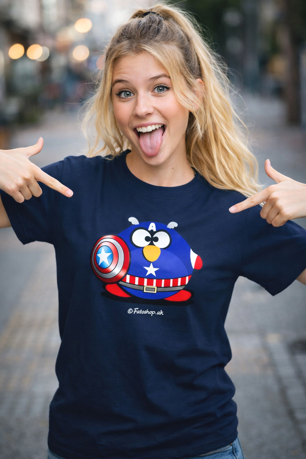 This T-shirt features the original “Captain Fat Penguin” cartoon design, a bold and humorous character inspired by superhero themes. With strong colours and a playful visual style, the design creates a fun and eye-catching look.