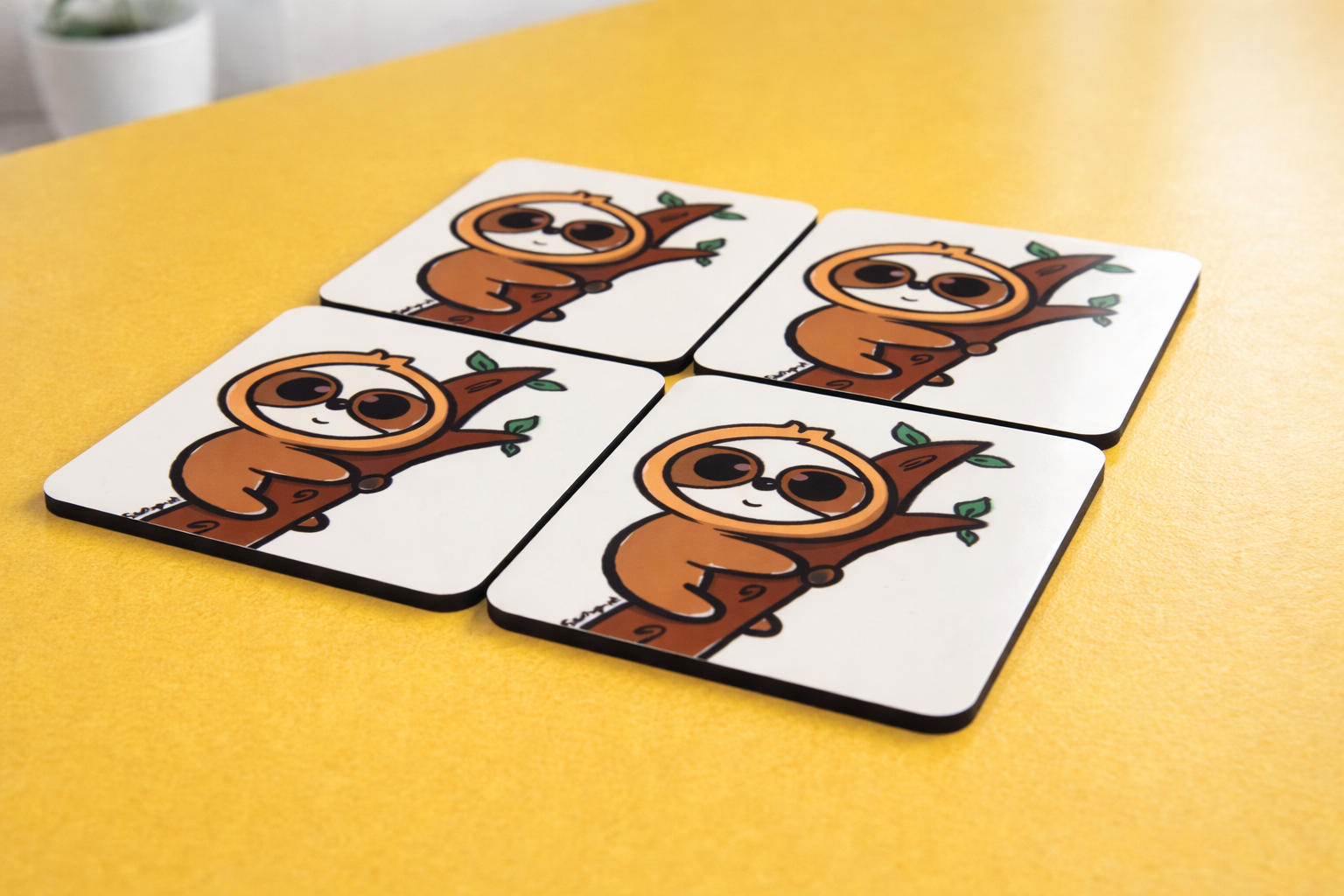 ''This Hand Drawn Sloth Coaster features a charming hand-drawn cartoon sloth hugging a tree, making it a warm and cheerful gift for animal lovers and cozy home decor.''