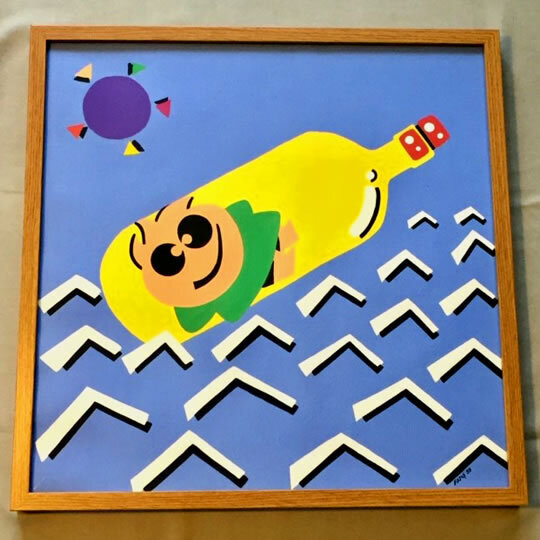 Message in a Bottle Cartoon Painted in 1995. Exhibited same year in Istanbul-Turkey.