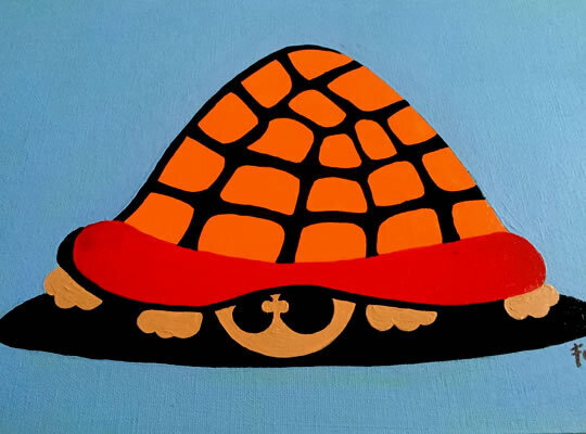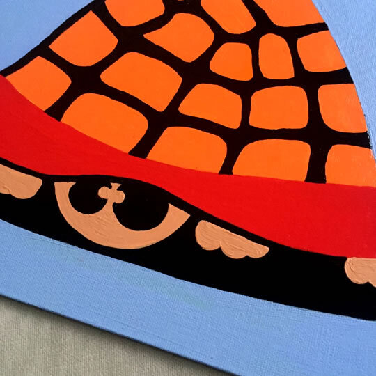 Tortoise Cartoon Painted in Cambridge, 2021. Artwork needs to be framed..