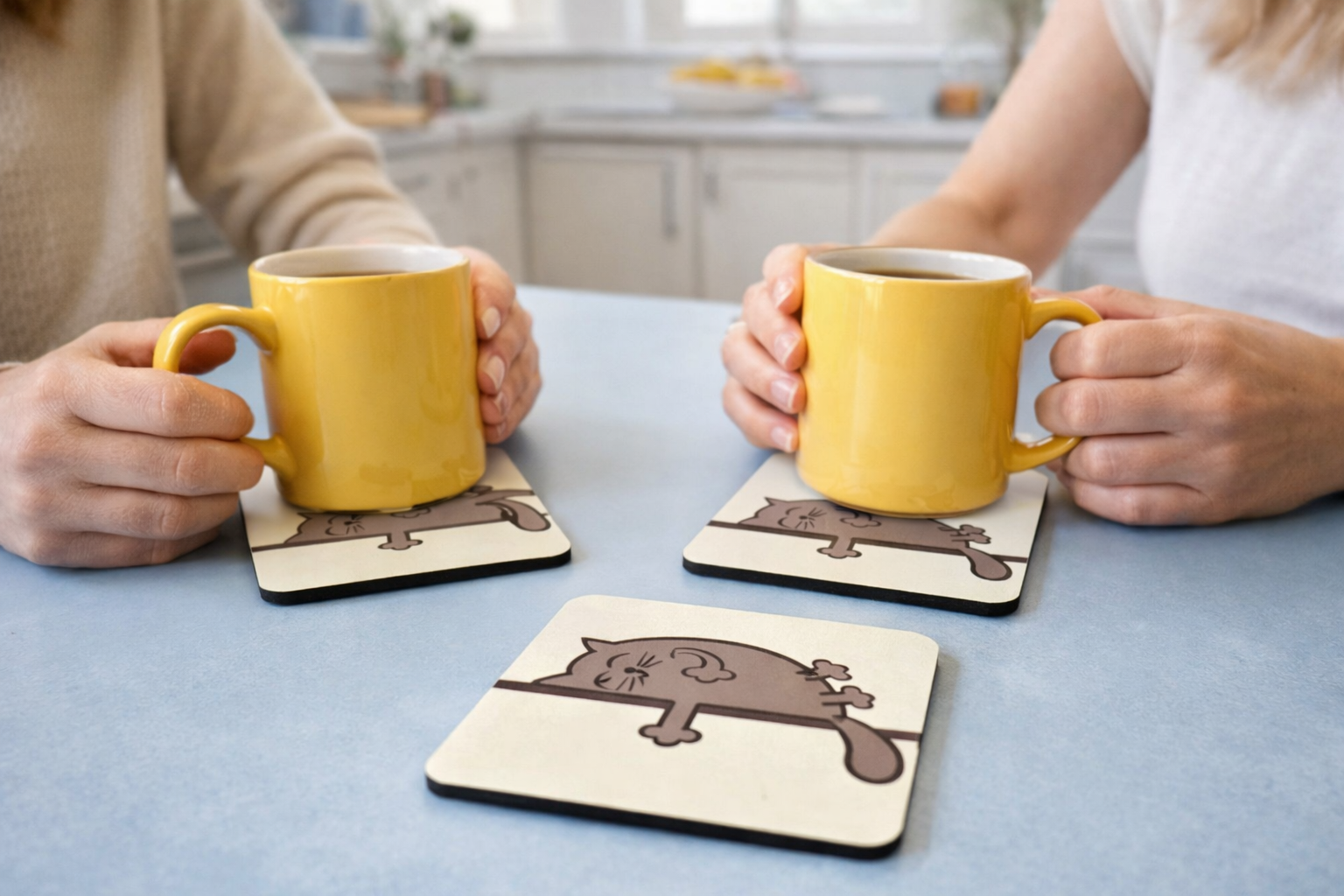 "This Grey Sleepy Cat Coaster features a relaxed cartoon cat resting lazily on a ledge, making it a calm and charming gift for cat lovers and cozy home decor."