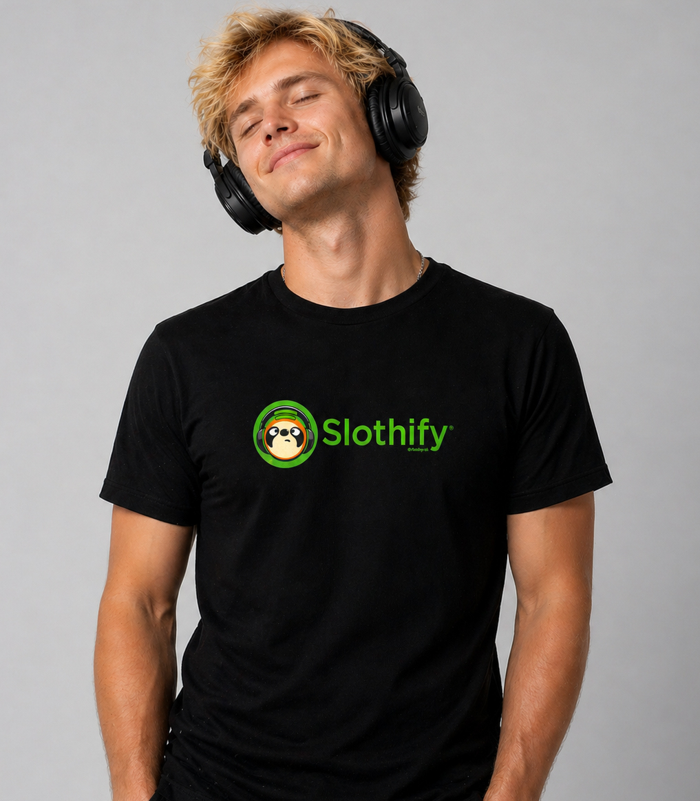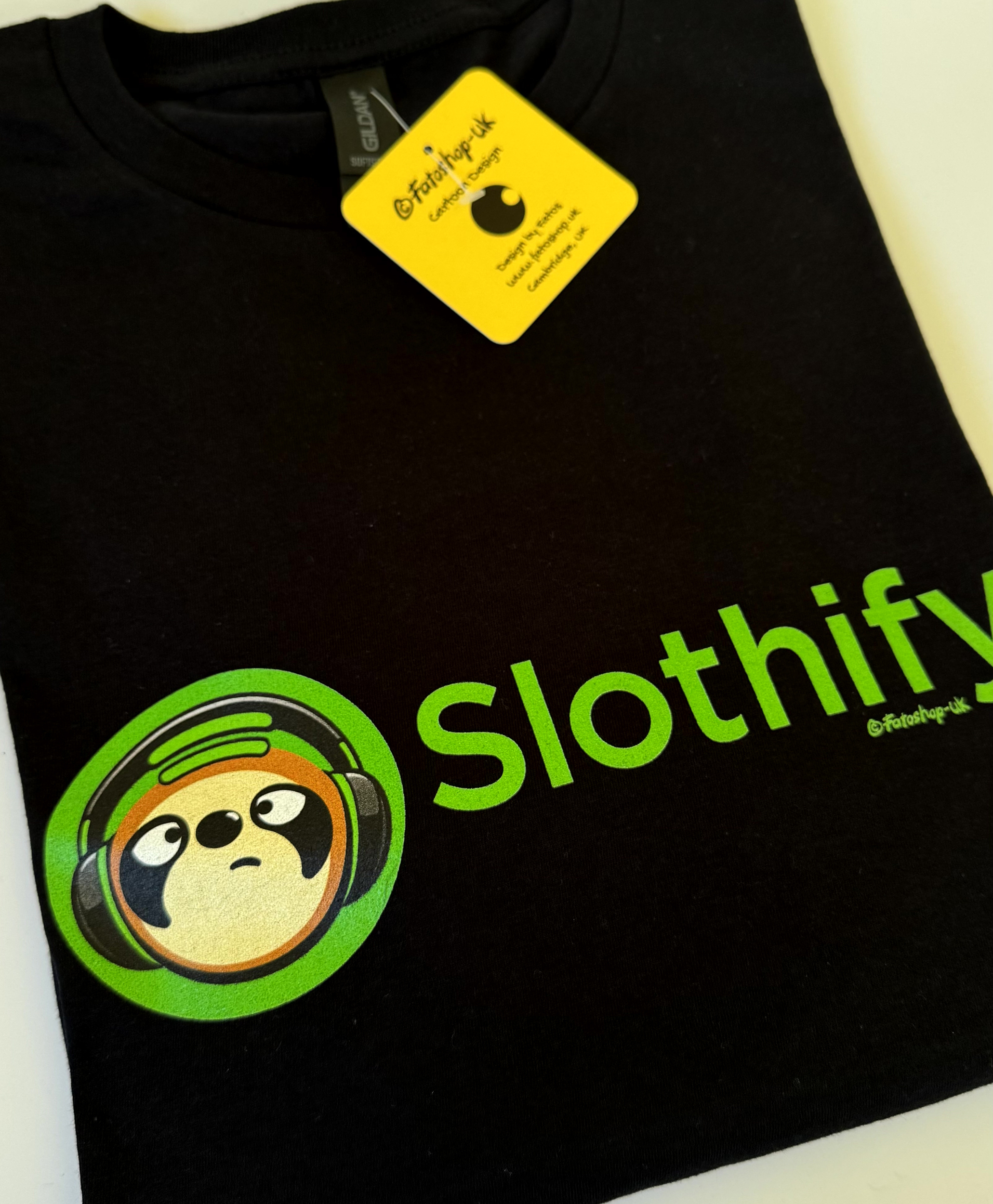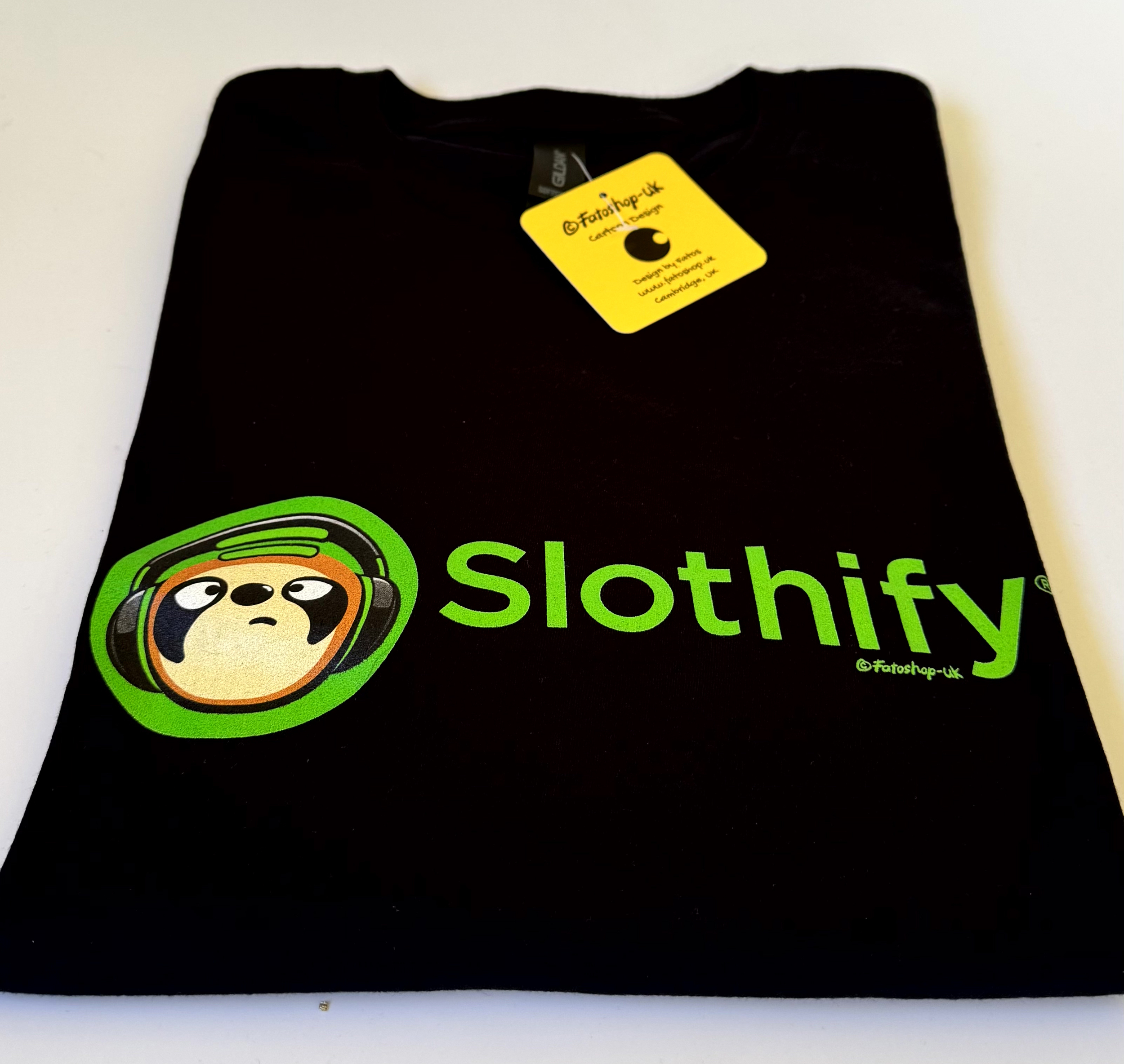 This item features the original ‘Slotify’ cartoon illustration created by Fatos, designed to bring humour, character, and a bold graphic edge to everyday wear.